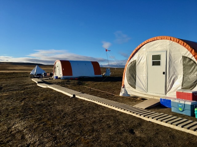 Main tent (distance) lab in foreground